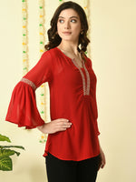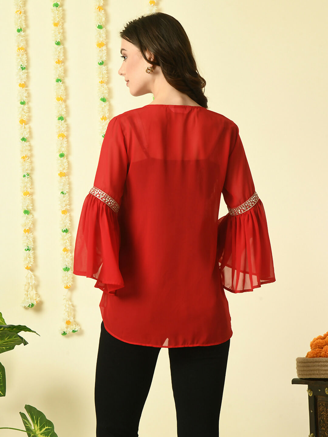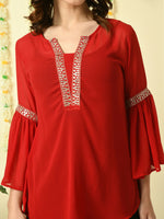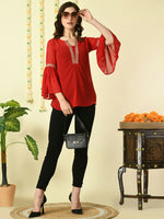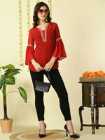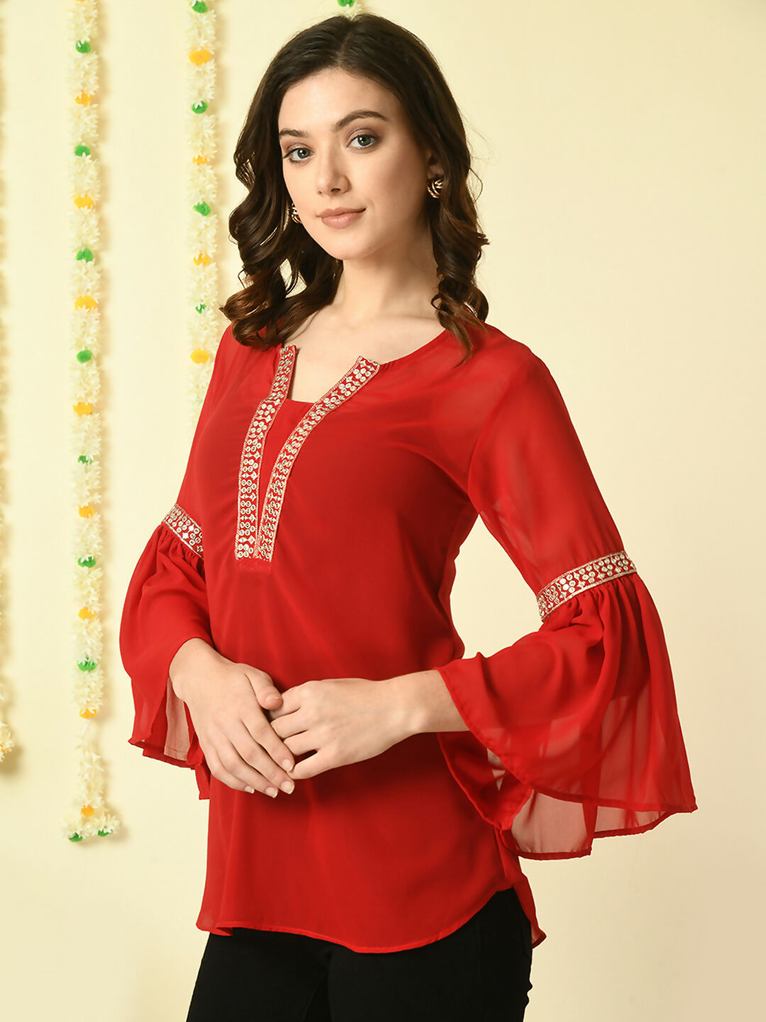 Myshka Women's Red Embroidered Party Fusion Top - Distacart