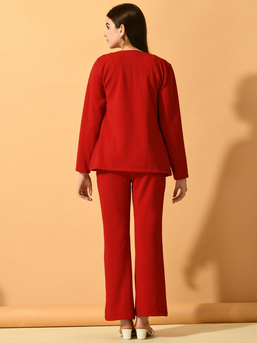 Myshka Women's Red Solid Solid Jacket - Distacart