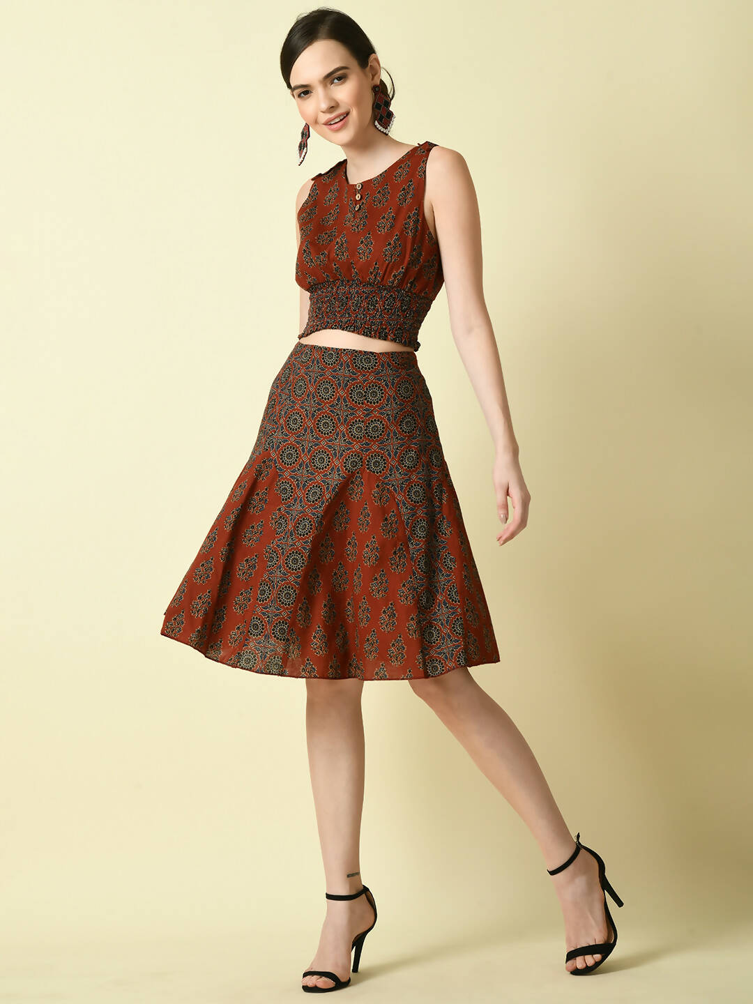 Myshka Women's Rust Ethnic Motifs Printed Top Color: Rust Top Type:TOP Bottom Type:NA Dupatta:NO Dupatta Fabric:NA Fabric:Cotton Lining:Has ...