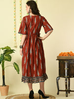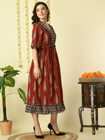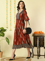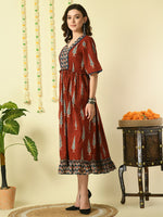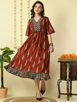 Myshka Women's Rust Printed Cotton Party Dress - S