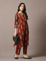 Myshka Women's Rust Printed Cotton Straight Party Kurta Set Color: Rust Top Type: Kurta Bottom Type: Trousers Dupatta: No Dupatta Fabric: NA...