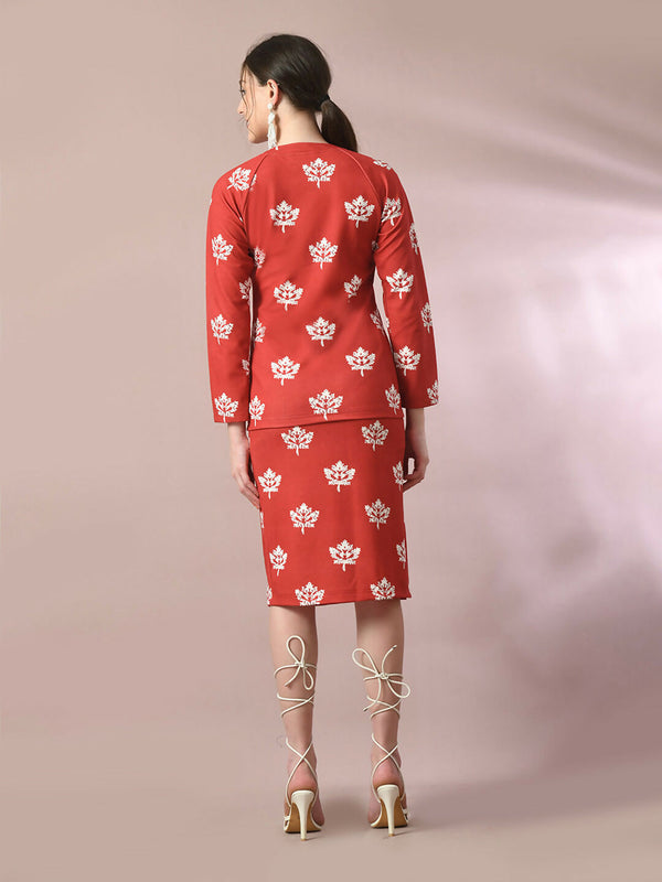 Myshka Women's Rust Printed Knee Length Party Embellished Skirts