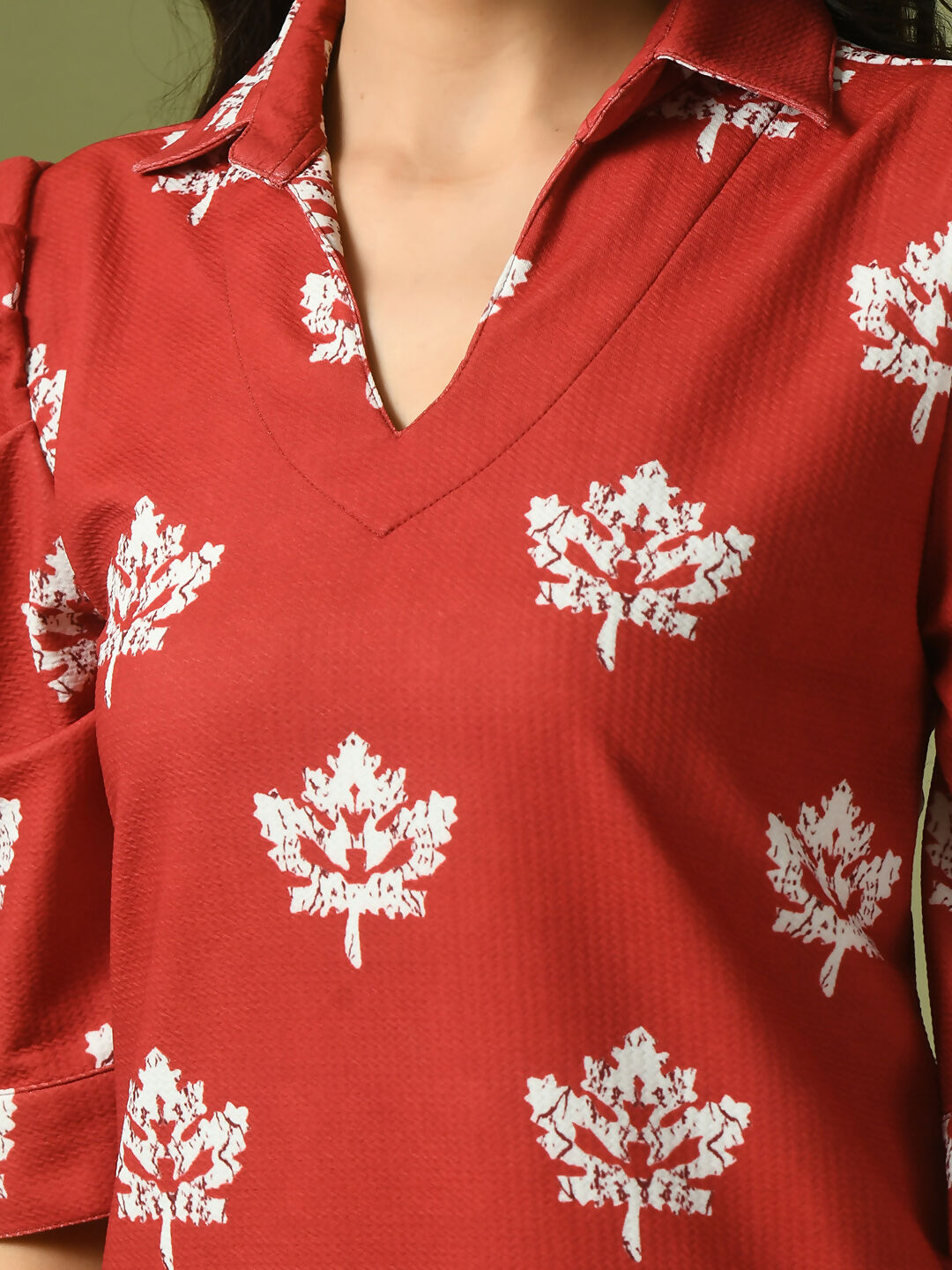 Myshka Women's Rust Printed Shirt Collar Fit and Flare Party Dress Color: Rust Dupatta: No Dupatta Fabric: NA Fabric: Polyester Lining: NA ...