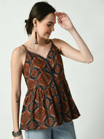 Myshka Women's Rust Printed Sweetheart Neck Top Color: Rust Top Type:TOP Bottom Type:NA Dupatta:NO Dupatta Fabric:NA Fabric:Pure Cotton Lini...