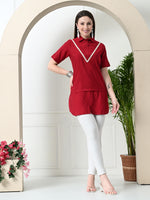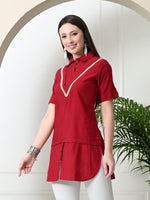 Myshka Women's Solid A-Line Collared Neck Casual Tunic In Red Colour Pack Contains: 1 top Top Length of Kurta: 28 Inch Top Shape: Relaxed Top ...