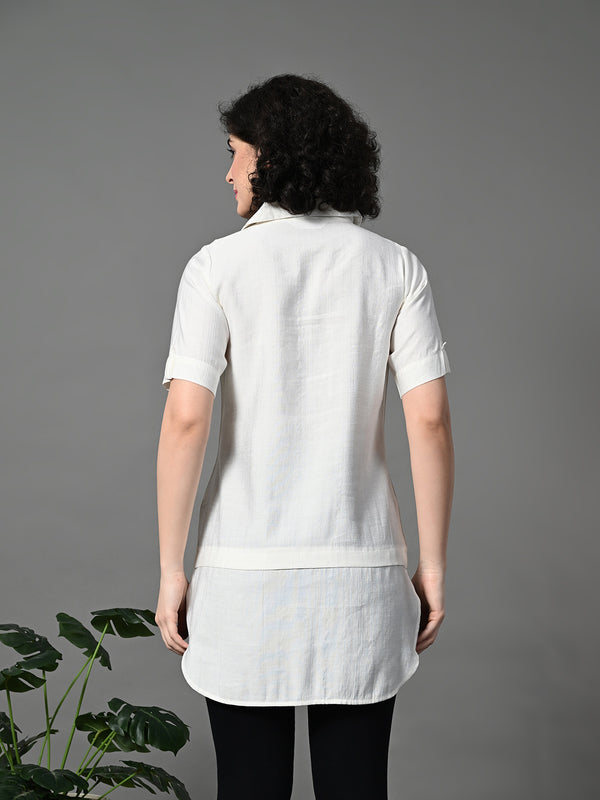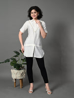 Myshka Women's Solid A-Line Collared Neck Casual Tunic In White Colour