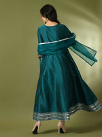 Myshka Women's Teal Solid Silk Anarkali Party Kurta With Dupatta