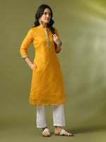 Myshka Women's Yellow Printed Cotton Blend Straight Party Kurta Set Color: Yellow Top Type: Kurta Bottom Type: Trousers Dupatta: No Dupatta ...