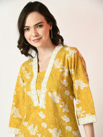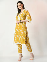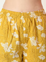 Myshka Women's Yellow Printed Kurta With Trousers - Distacart