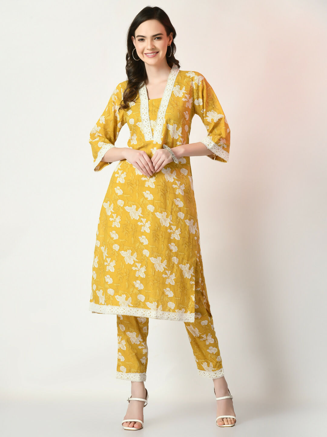 Myshka Women's Yellow Printed Kurta With Trousers Color: Yellow Top Type: Kurta Bottom Type: Trousers Dupatta: NO Dupatta Fabric: NA Fabric:...