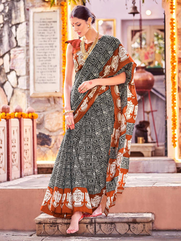 This saree is made from Bhagalpuri Silk and is Black in color. Our Ethnic Sarees comes With Blouse Piece, Which can be Stitched according to Your Taste and Preference. This Saree is Crafted by Skill Craftsmen without Compromising on its Quality. With This Beautiful Design and Fabric, This Saree will fetch You Oodles of Compliments and Praise. saree fit size is 5.5 mtr saree & 0.8 mtr Blouse, Free Size |.