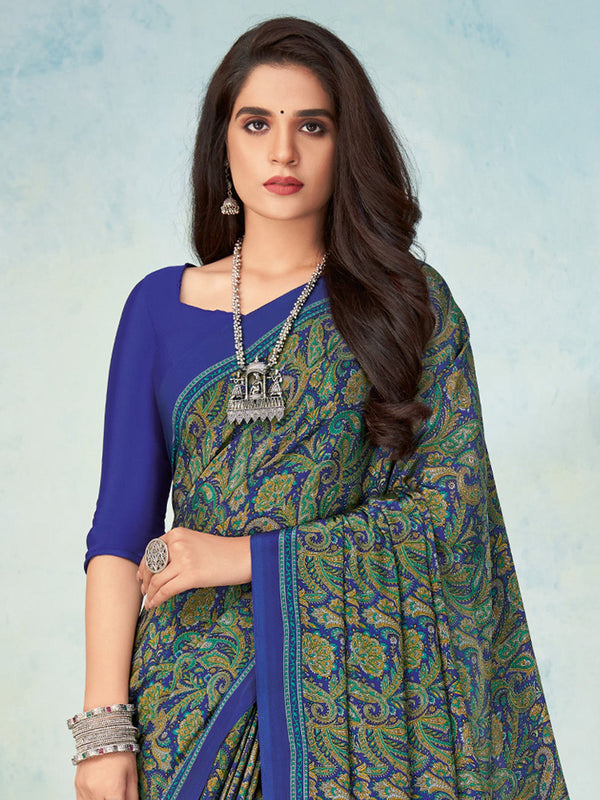NOZ2TOZ Women's Crepe Blue Printed Designer Saree With Blouse PieceDESCRIPTION This saree is made from Crepe and is Blue in color. Our Ethnic Saree...