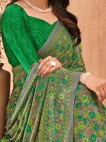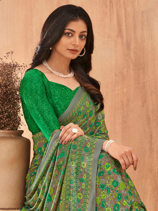 NOZ2TOZ Women's Crepe Green Printed Designer Saree With Blouse Piece - Free Size