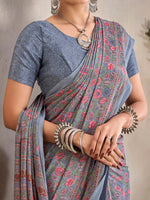NOZ2TOZ Women's Crepe Grey Printed Designer Saree With Blouse Piece - Distacart