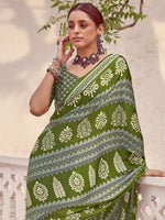 NOZ2TOZ Women's Crepe Light Green Printed Designer Saree With Blouse Piece