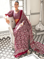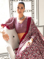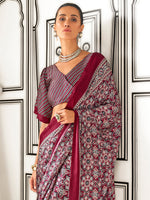 NOZ2TOZ Women's Crepe Maroon Printed Designer Saree With Blouse Piece - Free Size