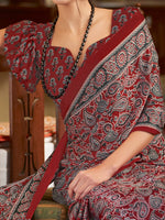 NOZ2TOZ Women's Crepe Maroon Printed Designer Saree With Blouse Piece - Free Size