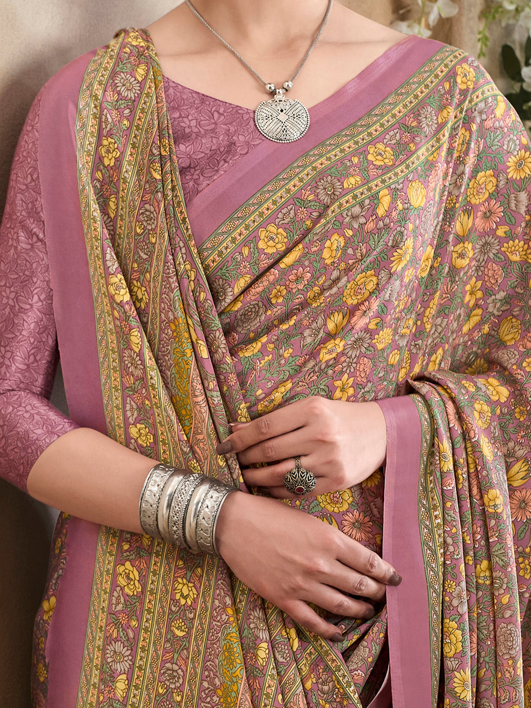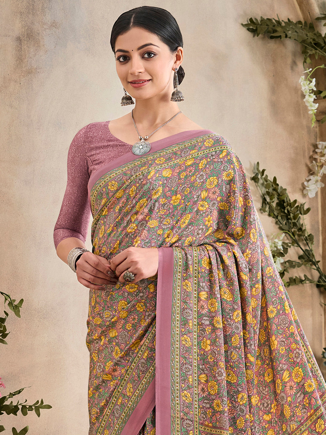This saree is made from Crepe and is Mauve in color. Our Ethnic Sarees comes With Blouse Piece, Which can be Stitched according to Your Taste and Preference. This Saree is Crafted by Skill Craftsmen without Compromising on its Quality. With This Beautiful Design and Fabric, This Saree will fetch You Oodles of Compliments and Praise. saree fit size is 5.5 mtr saree & 0.8 mtr Blouse, Free Size |.