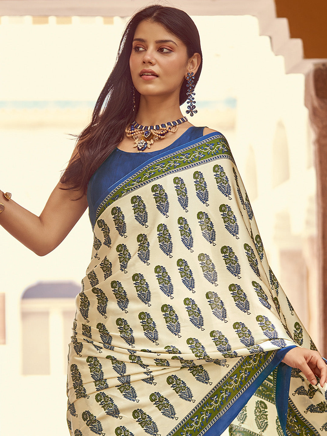 This saree is made from Crepe and is Cream in color. Our Ethnic Sarees comes With Blouse Piece, Which can be Stitched according to Your Taste and Preference. This Saree is Crafted by Skill Craftsmen without Compromising on its Quality. With This Beautiful Design and Fabric, This Saree will fetch You Oodles of Compliments and Praise. saree fit size is 5.5 mtr saree & 0.8 mtr Blouse, Free Size |.