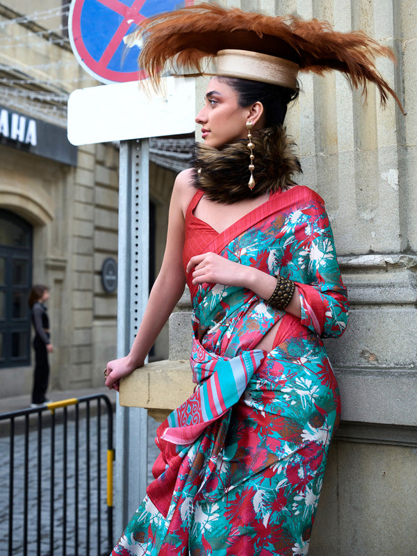 Size and fit description - 5.5 mtr saree & 0.8 mtr Blouse, Free Size