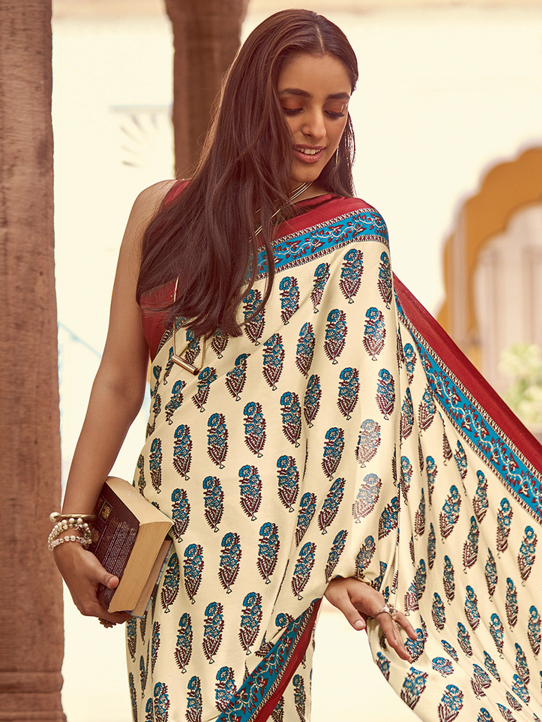 This saree is made from Crepe and is Cream in color. Our Ethnic Sarees comes With Blouse Piece, Which can be Stitched according to Your Taste and Preference. This Saree is Crafted by Skill Craftsmen without Compromising on its Quality. With This Beautiful Design and Fabric, This Saree will fetch You Oodles of Compliments and Praise. saree fit size is 5.5 mtr saree & 0.8 mtr Blouse, Free Size |.