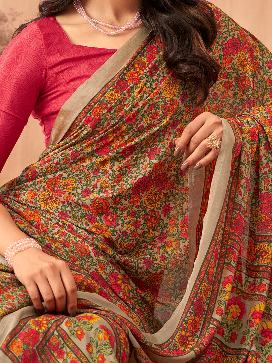 This saree is made from Crepe and is Beige in color. Our Ethnic Sarees comes With Blouse Piece, Which can be Stitched according to Your Taste and Preference. This Saree is Crafted by Skill Craftsmen without Compromising on its Quality. With This Beautiful Design and Fabric, This Saree will fetch You Oodles of Compliments and Praise. saree fit size is 5.5 mtr saree & 0.8 mtr Blouse, Free Size |.