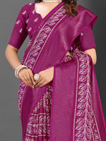 NOZ2TOZ Women's Dola Silk Magenta Printed Designer Saree With Blouse Piece - Distacart