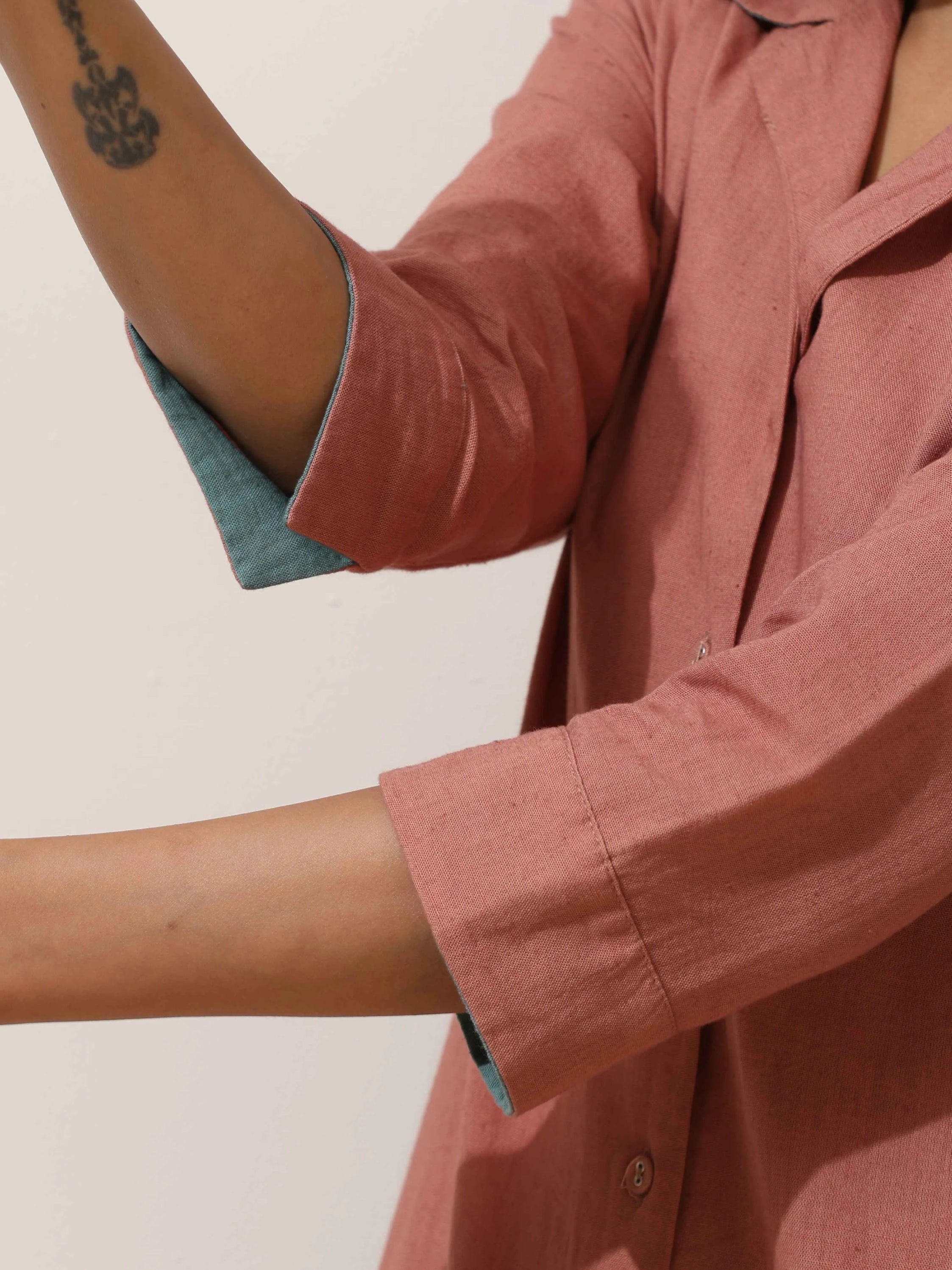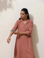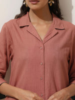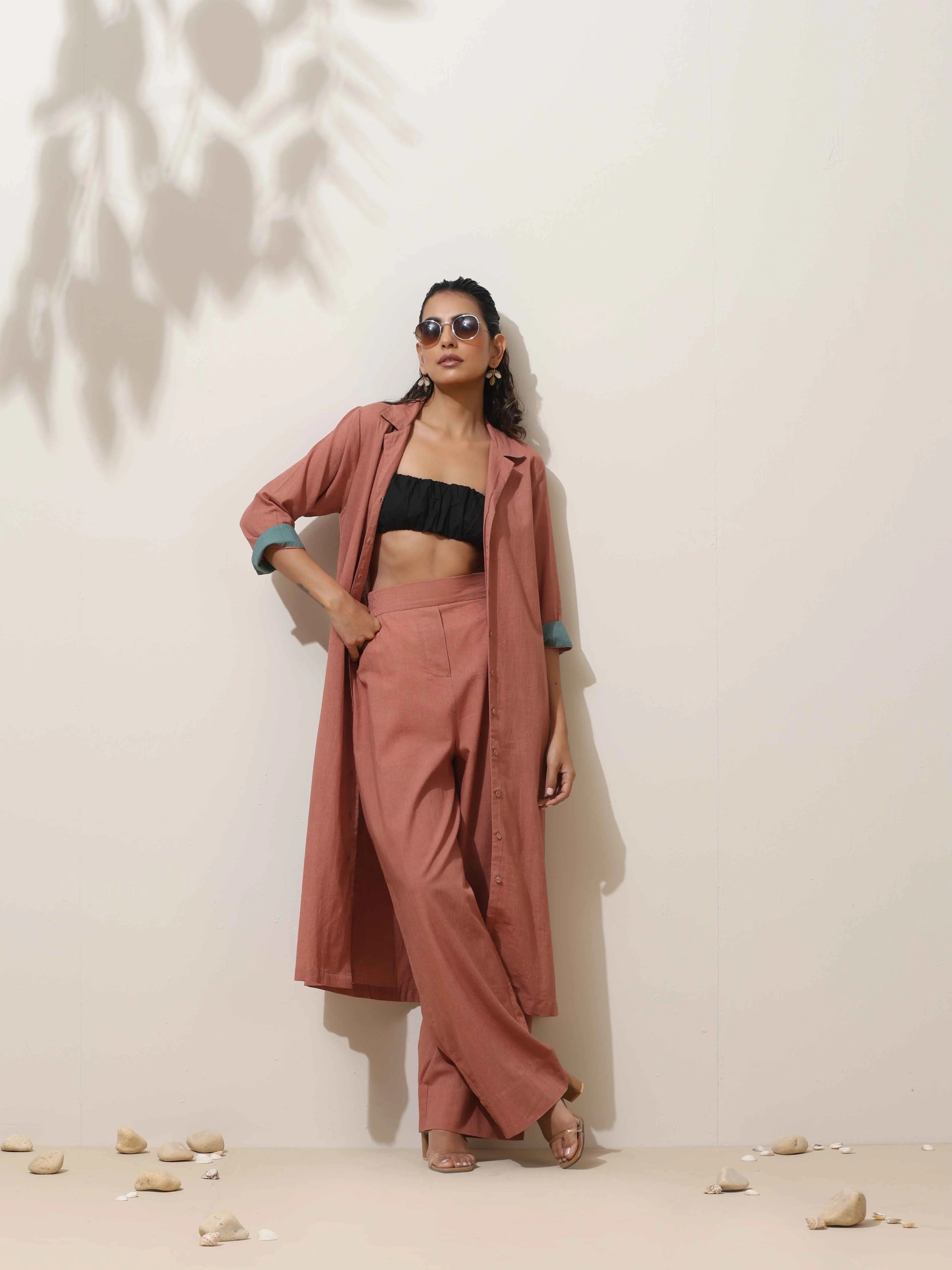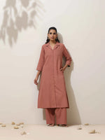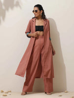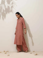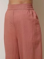trueBrowns Peach Cotton Linen Kurta Pant Set