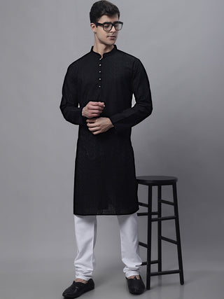 Jompers Men's Black Embroidered Design Kurta