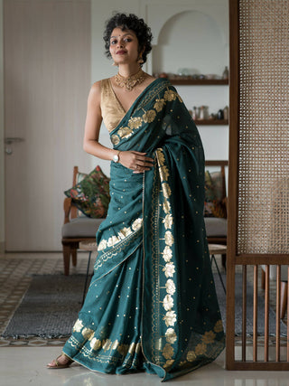 Suta Green Floral Cotton Blend Saree - Distacart