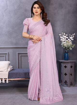 Vellora Border Work Rangoli Baby Pink Festival Wear Saree