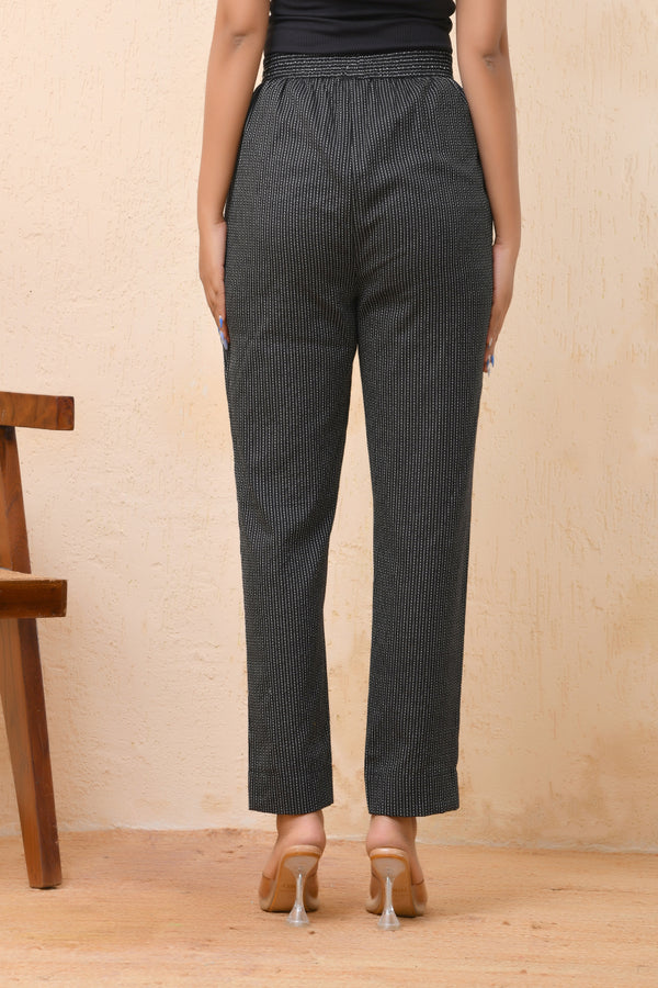 Vaasva Women Black Kantha Straight Fit Pants - S