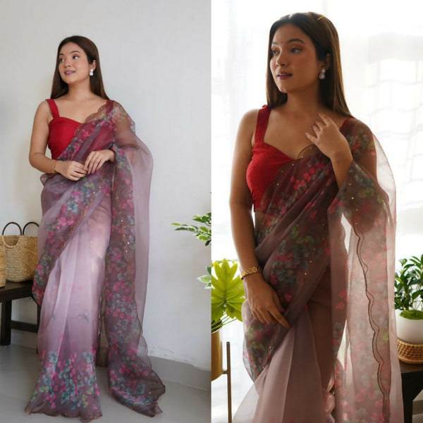 Presenting The Pure Organza Silk Saree With Beautiful Floral Print With * Viscose Thread Sequins Work In Border * Organza Saree With Viscose Thread Work Border As Its Soft And Ever Green