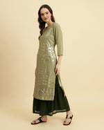 Varanga Green Sequened Kurta With Sharara And Sequened Ombre Dupatta