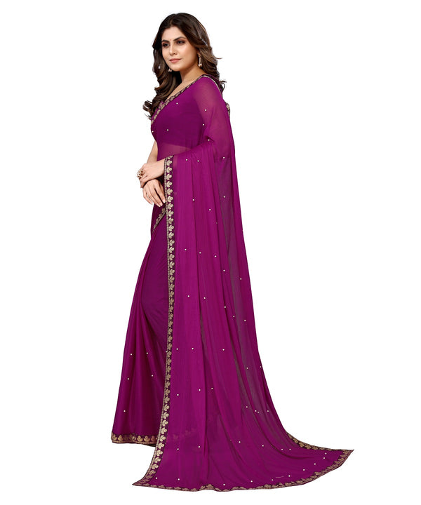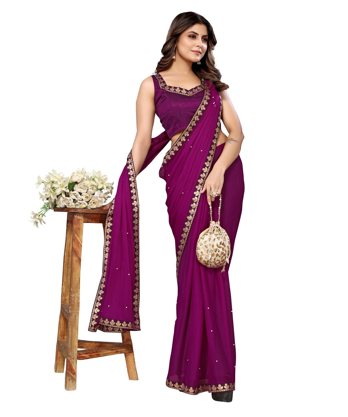Vamika Goergette Silk Thread Work Purple Bollywood Style Saree