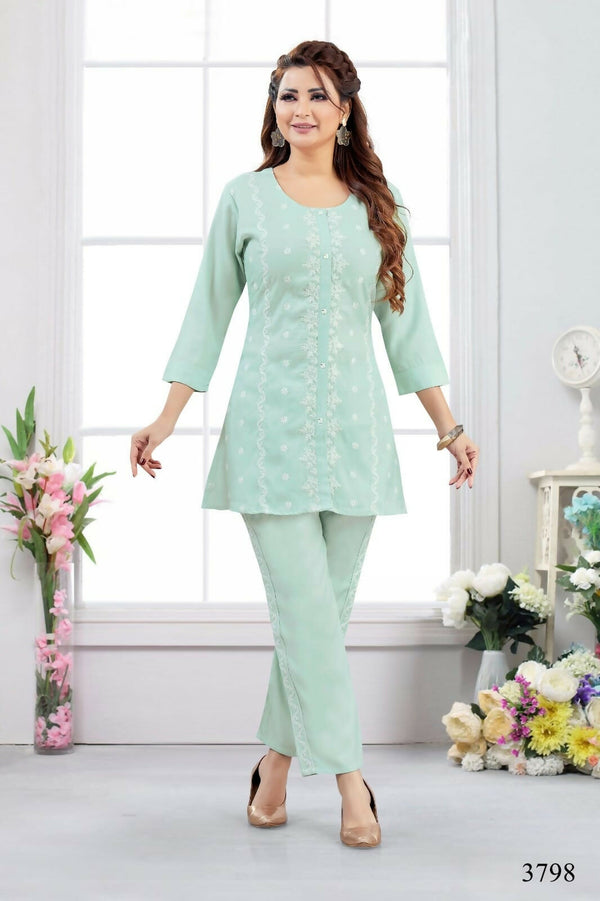 Joban Fashion Heavy Muslin Pista Color Kurta Set Top Color : Pista Lining : Cotton Bottom Color : Pista Top Length : 36-38 Top Fabric : Heavy ...