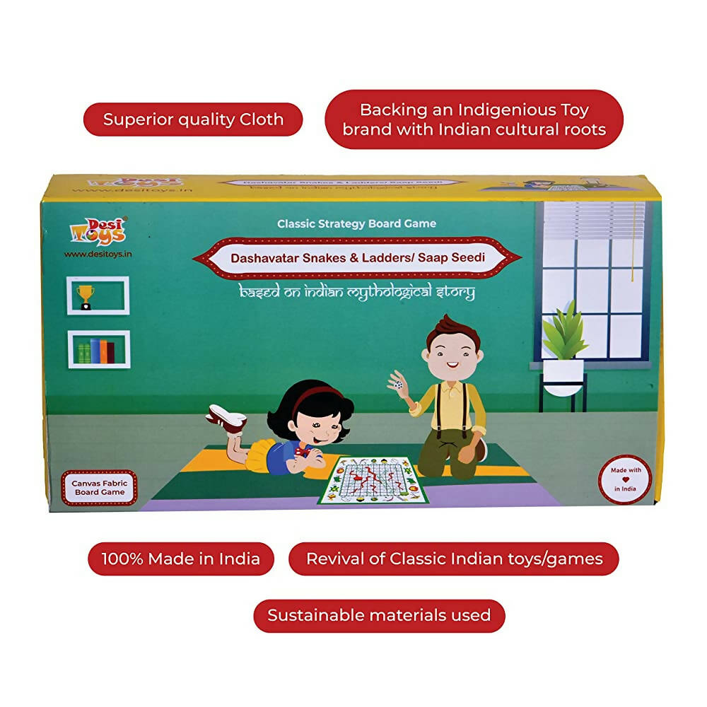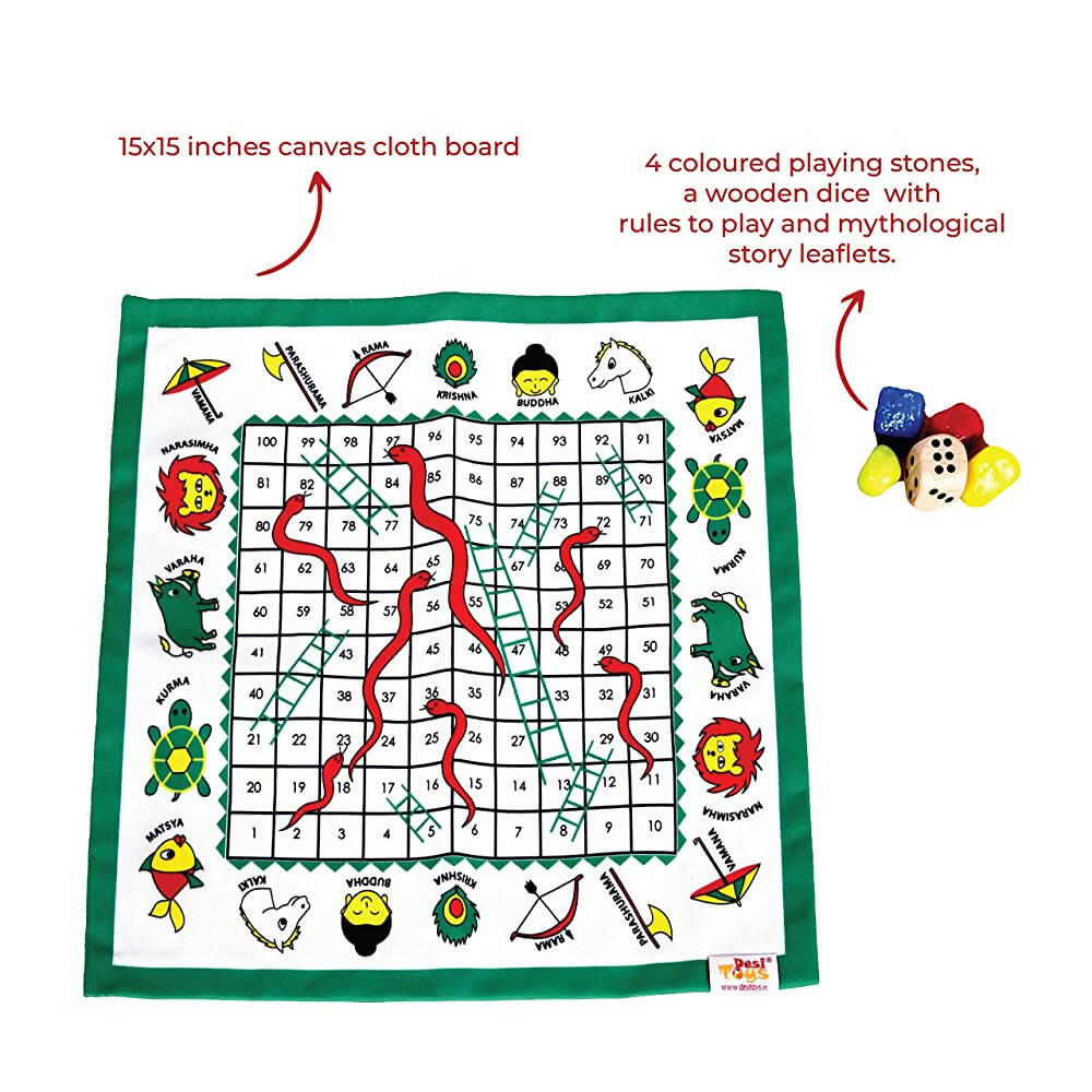 Desi Toys Dashavatar Snakes & Ladders/Saap Seedi, Classic Strategy Board Game with Canvas Fabric Board, Based on Indian Mythological StoryAbout...