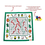 Desi Toys Dashavatar Snakes & Ladders/Saap Seedi, Classic Strategy Board Game with Canvas Fabric Board, Based on Indian Mythological Story