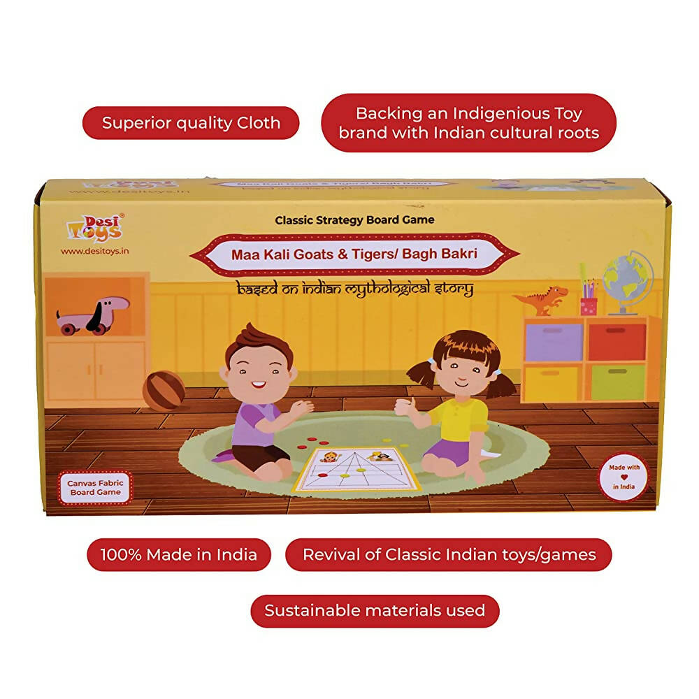 Desi Toys Maa Kali Goats & Tigers/Bagh Bakri, Classic Strategy Board Game with Canvas Fabric Board, Based on Indian Mythological StoryAbout The...