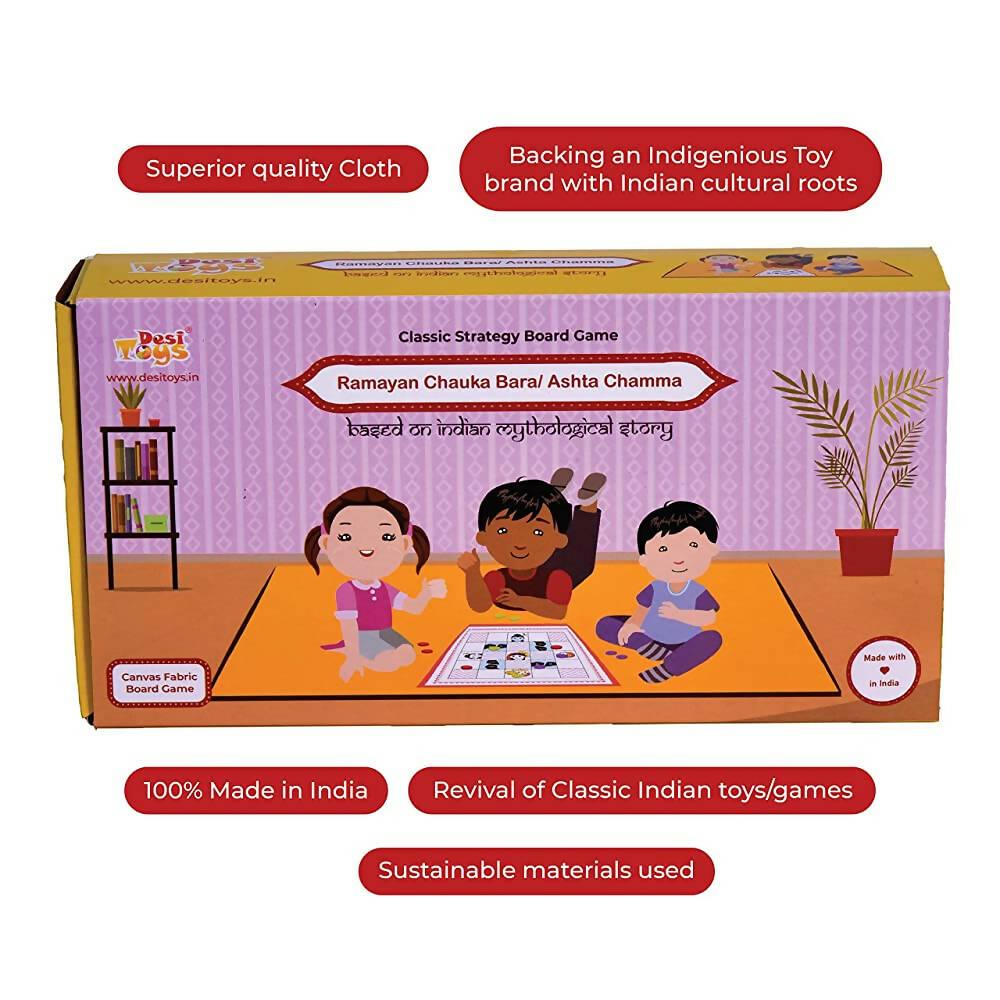 Desi Toys Ramayan Chauka Bara/ Ashta Chamma, Classic Strategy Board Game with Canvas Fabric Board, Based on Indian Mythological StoryAbout The Prod...