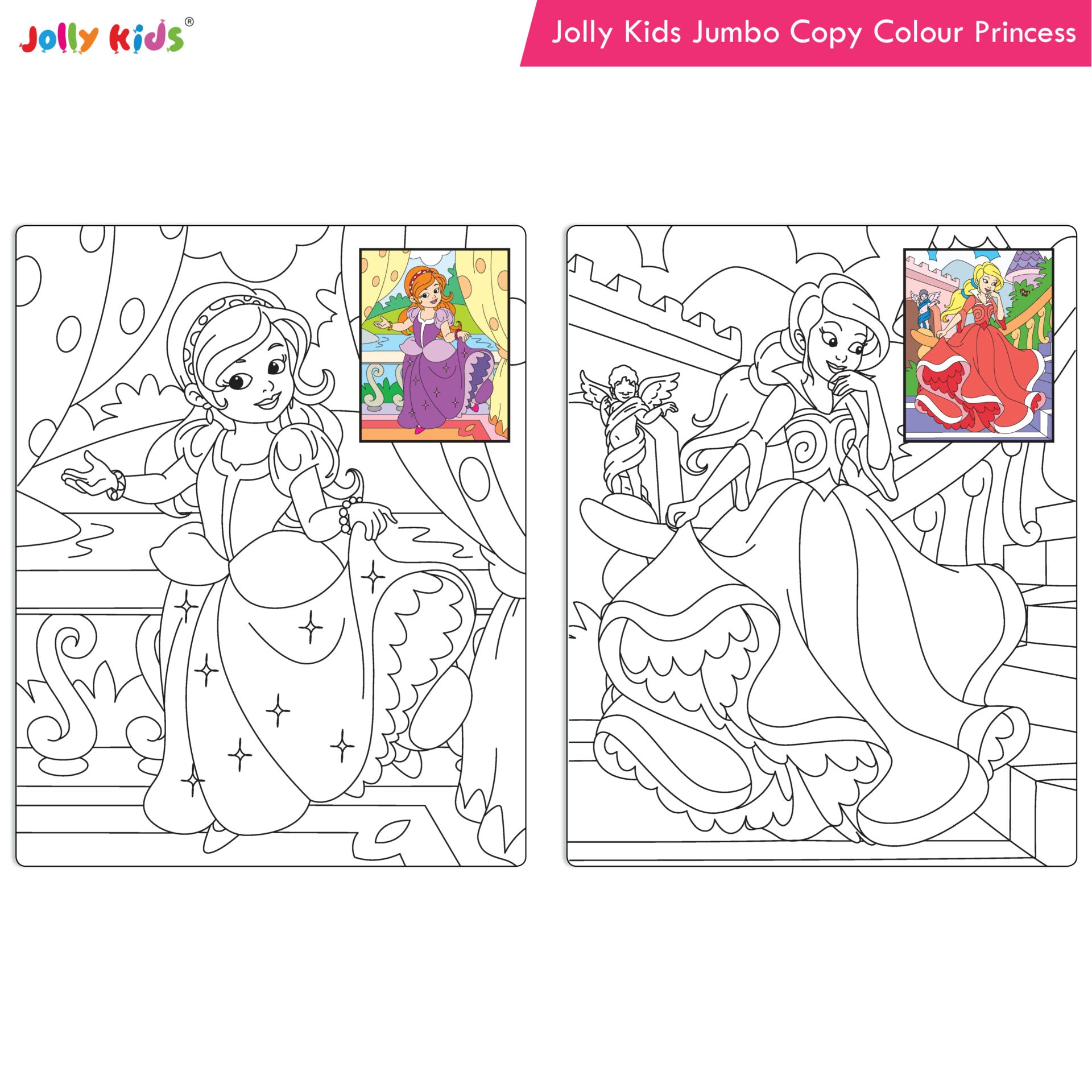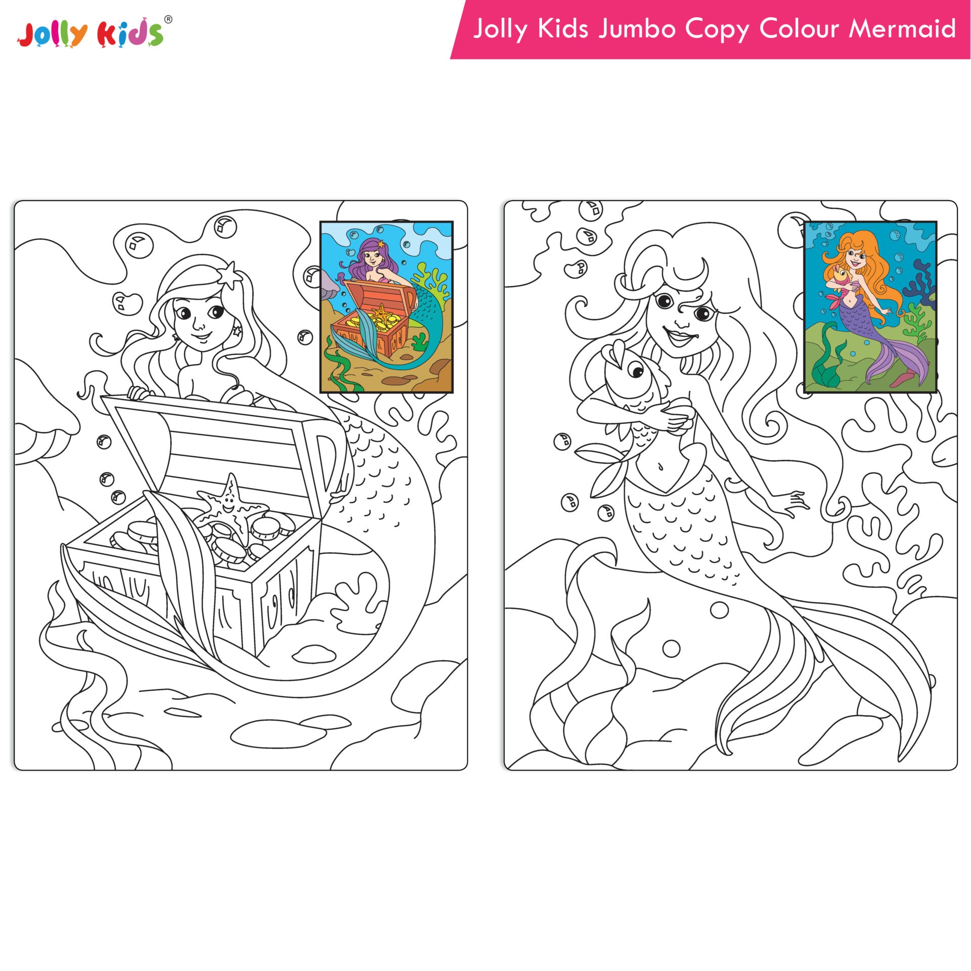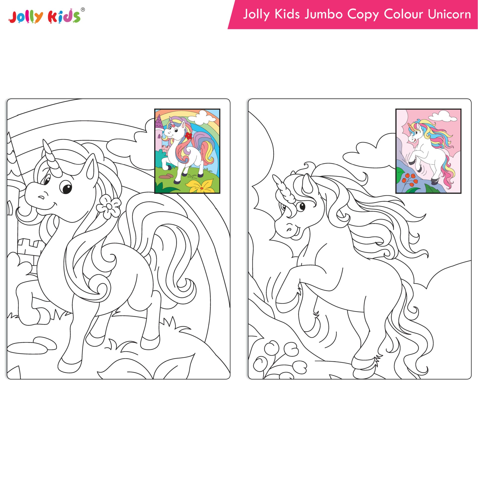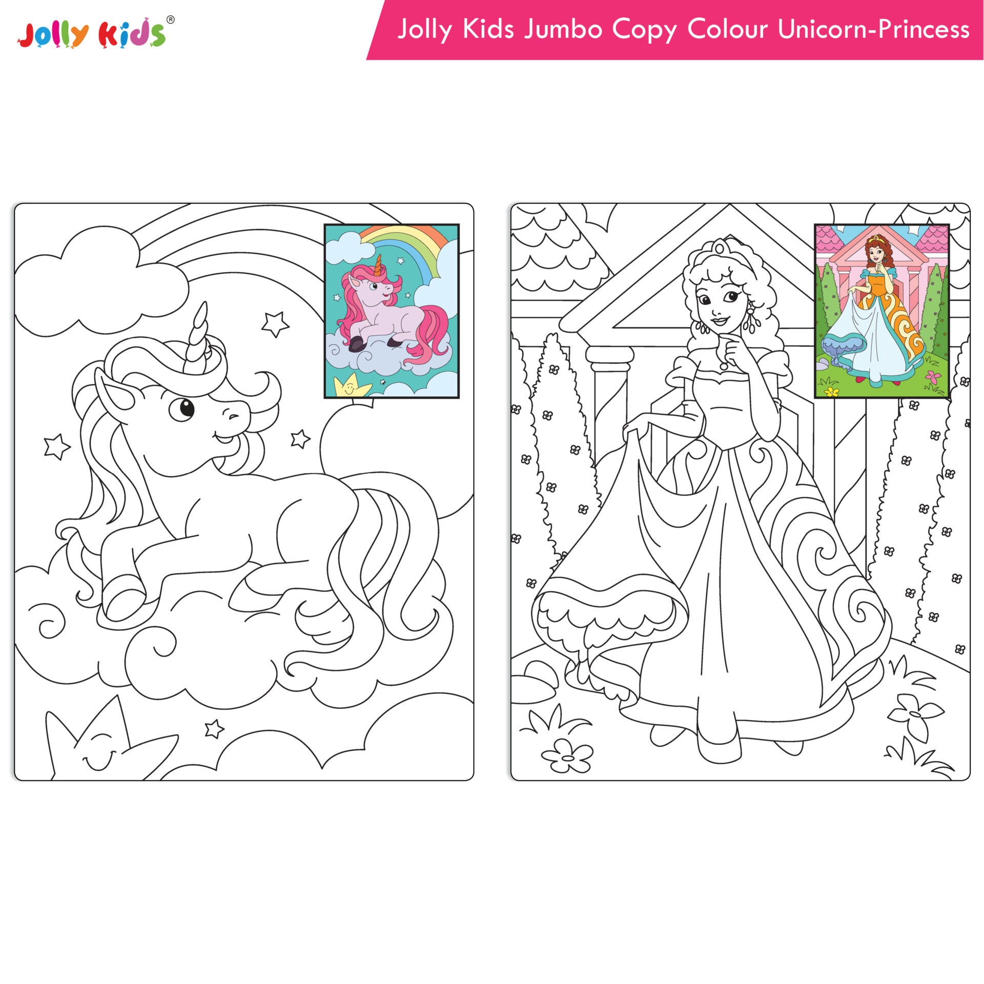 Jolly Kids Jumbo Copy Colour Book for Kids| Colouring Book Themes: Unicorns, Princess, Pirates, Mermaid |Ages 3-10 Years - Distacart