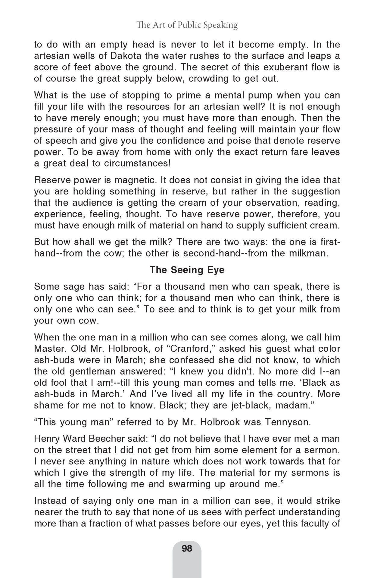 • Written by bestselling author Dale Carnegie, along with J. Berg Esenwein, The Art of Public Speaking lays out the important principles of creating and delivering successful speeches. Each chapter of this encouraging book will help readers hone their articulation skills and enable them to deliver an impactful speech as well. Read this book to find out how to: • Overcome stage fright and develop self-confidence. • Use different tools to get your ideas across convincingly. • Make your speech interesting. • Hold your listener’s attention. A classic work that has tremendously helped people over the years, this book not only teaches you the dos and don’ts of public speaking, it also provides you with ideas on how to write an influential speech.