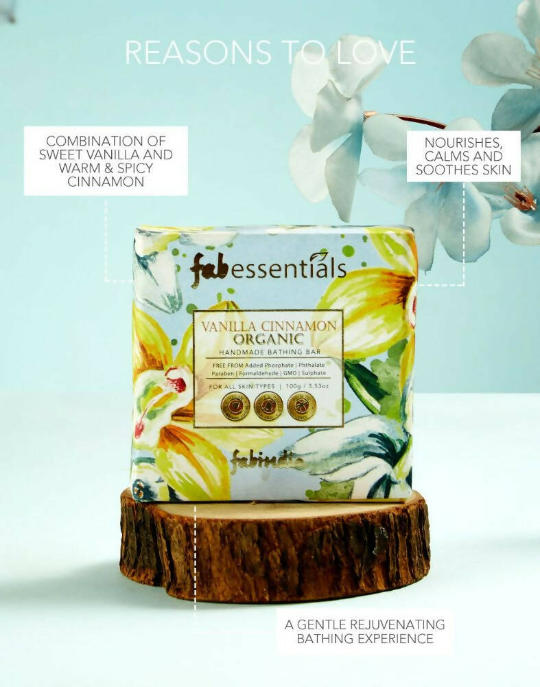 Fabessentials Vanilla Cinnamon Handmade Bathing Bar About the product:Fabessentials Vanilla Cinnamon Organic Handmade Bathing Bar cleanses the skin...