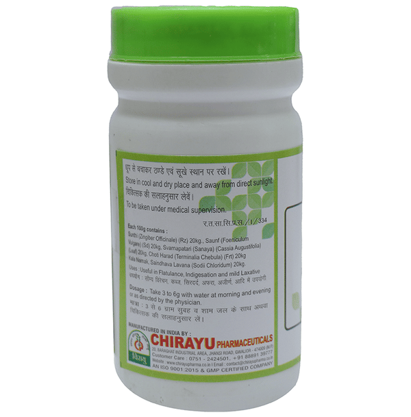 Chirayu Panchsakar Churna About the product:Chirayu Panchsakar Churna is a potent formula that is composed of the benefits of sunthi, saunf, kala n...