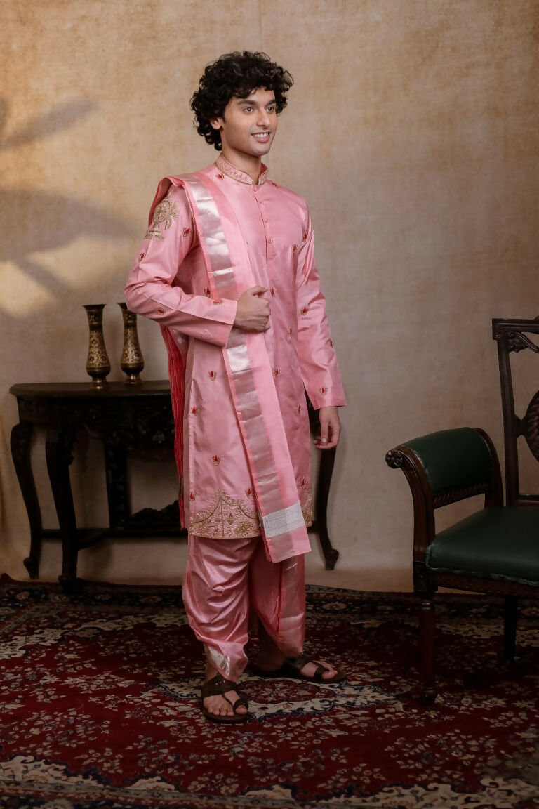 Kanjivaram Pattu Pink Srinivasa Kanjivaram By Hilo DesignCelebrate tradition with the Srinivasa Pattu Set, exquisitely crafted in pure Kanjivaram P...