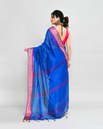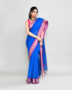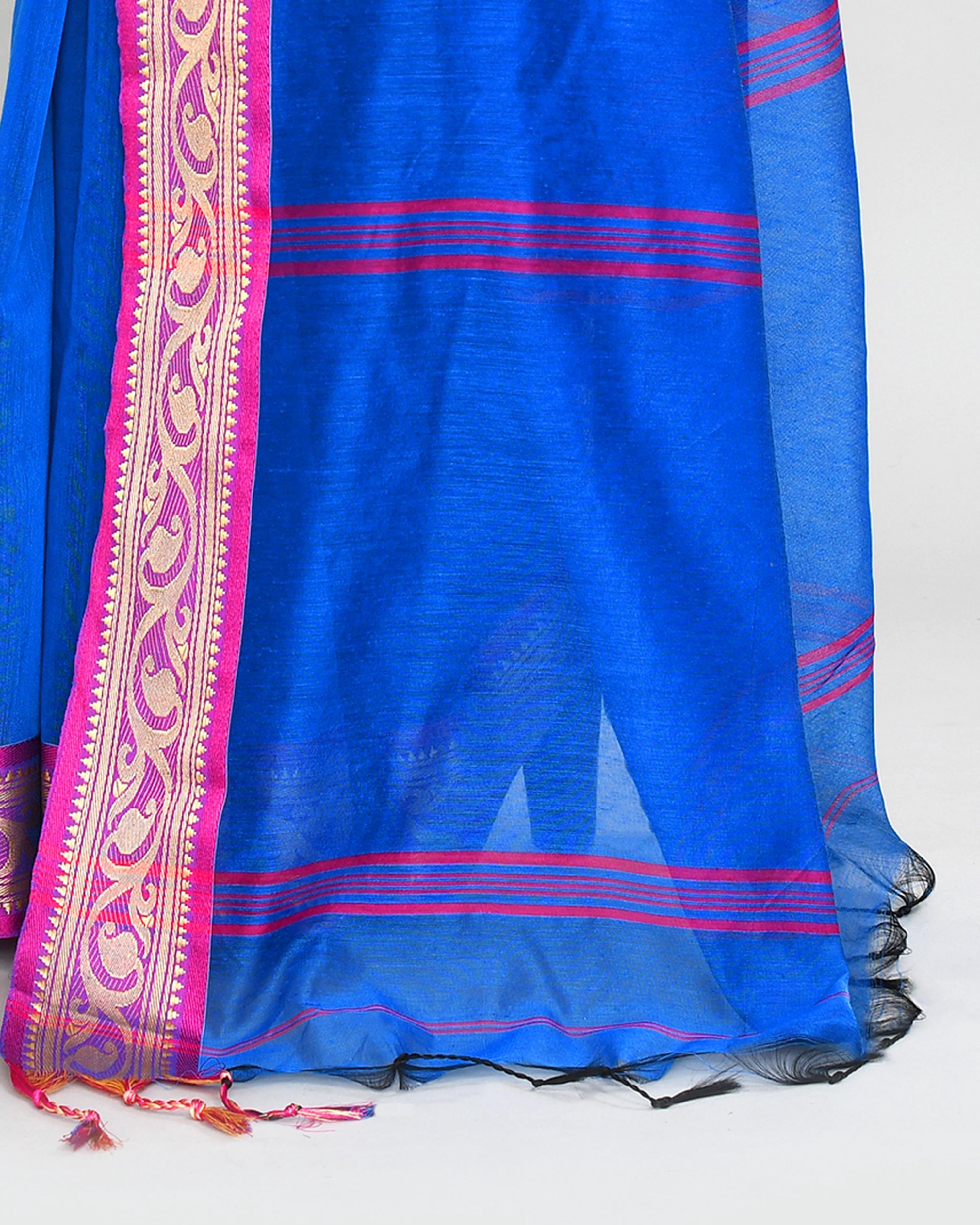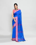 Piyari Fashion Women`s Cotton Silk Blue Handloom Saree With Blouse