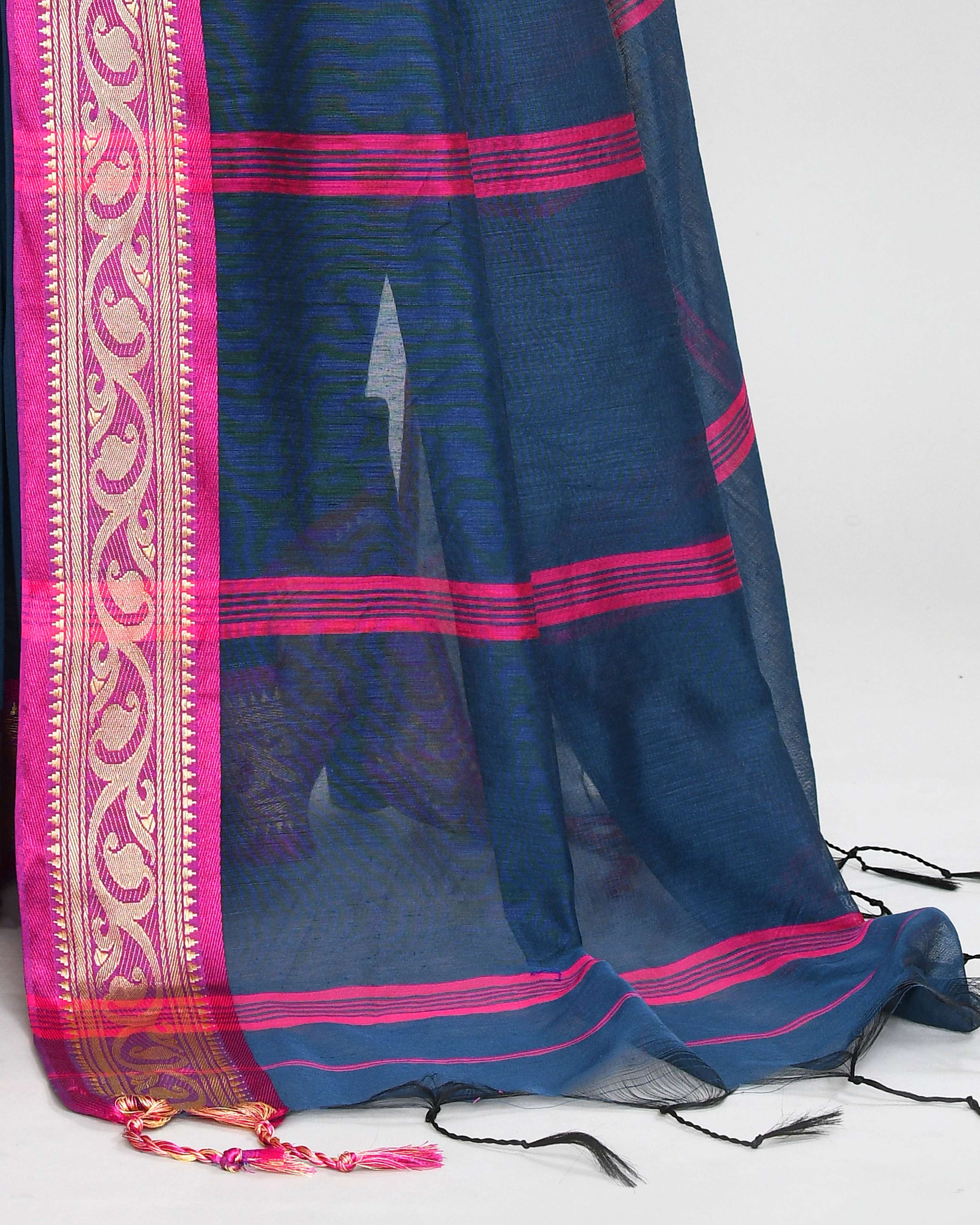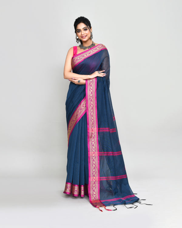 Piyari Fashion Women`s Cotton Silk Charcoal Handloom Saree With Blouse