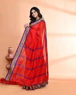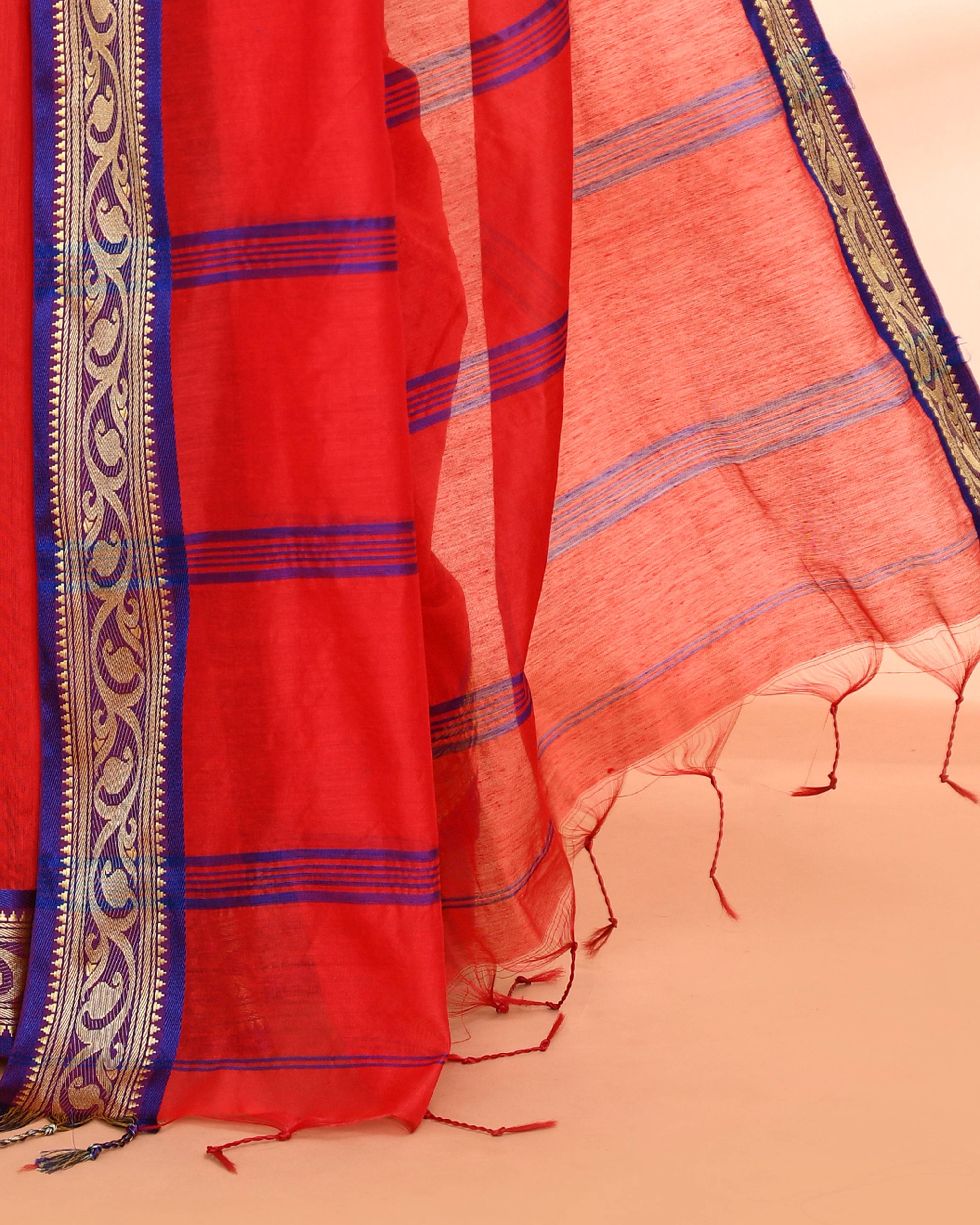 Piyari Fashion Women`s Cotton Silk Red Handloom Saree With Blouse