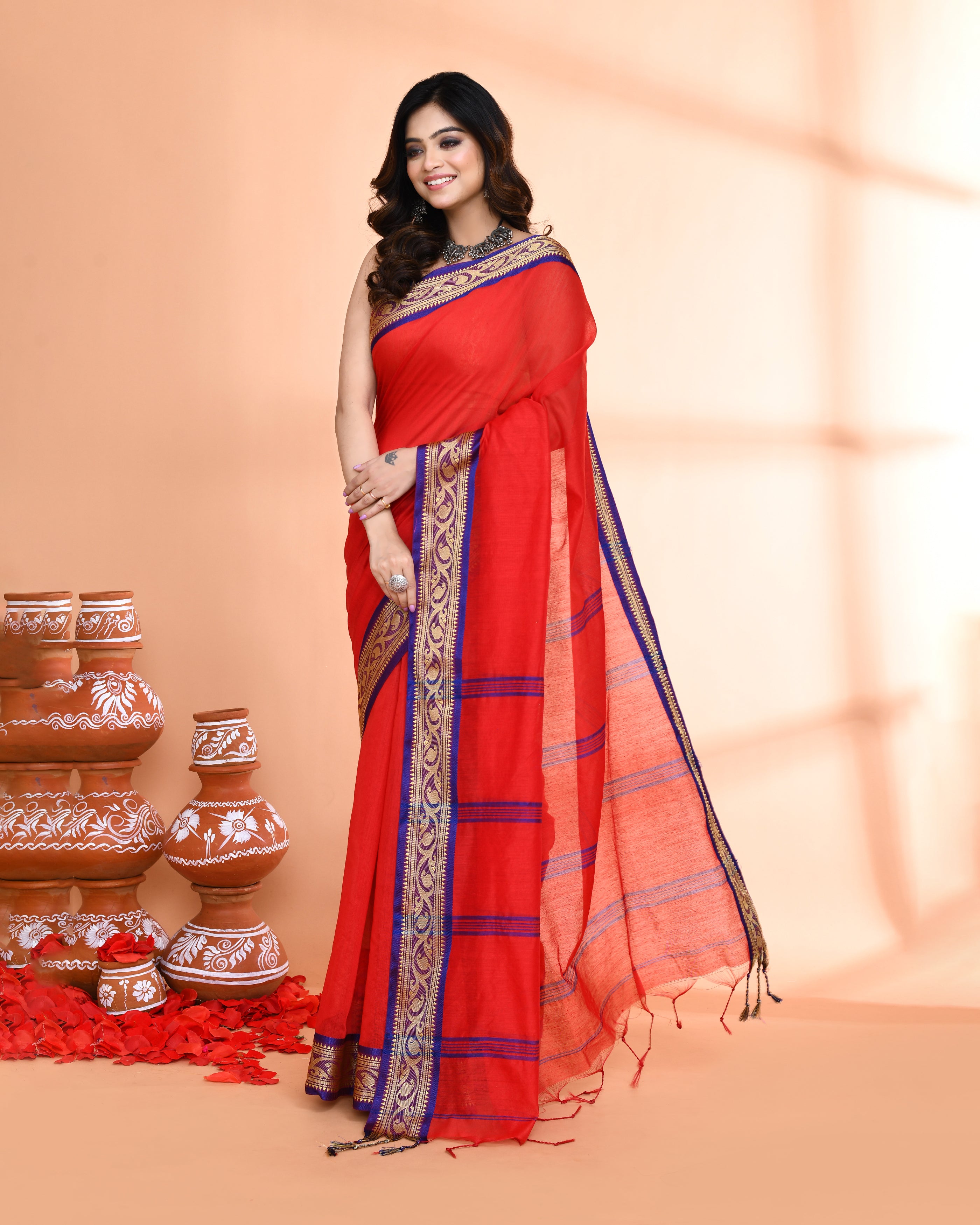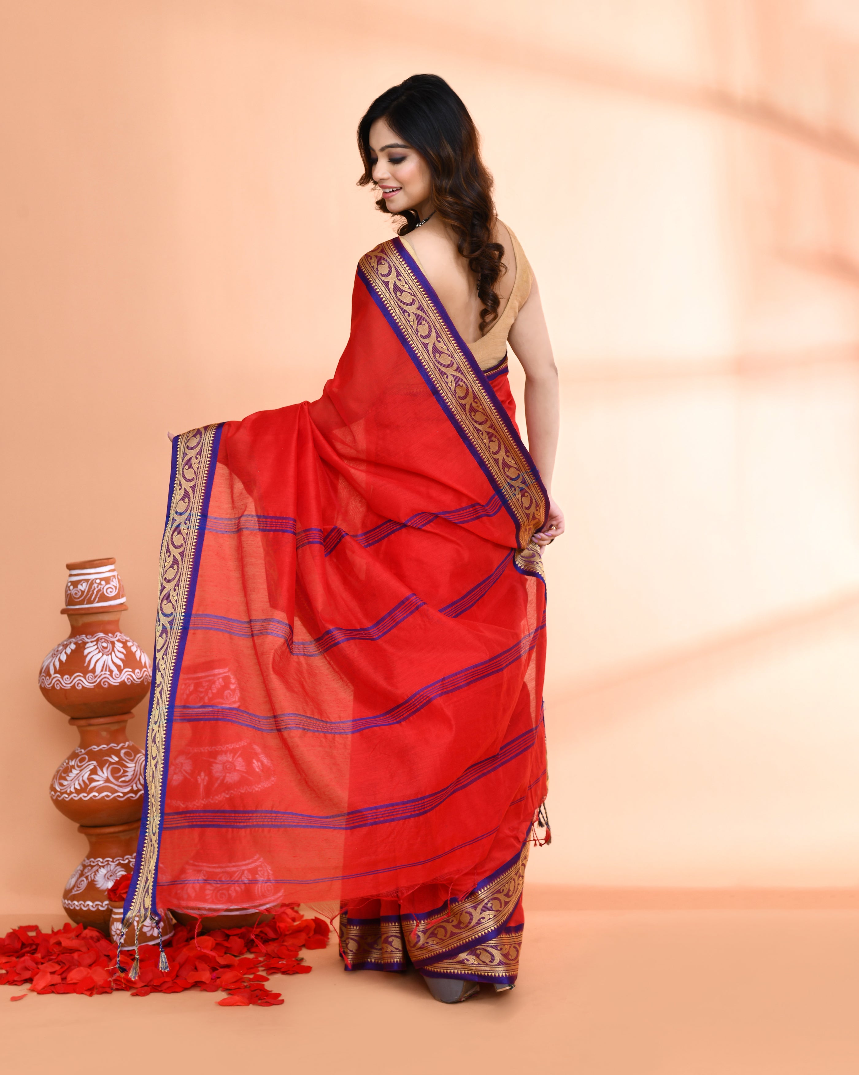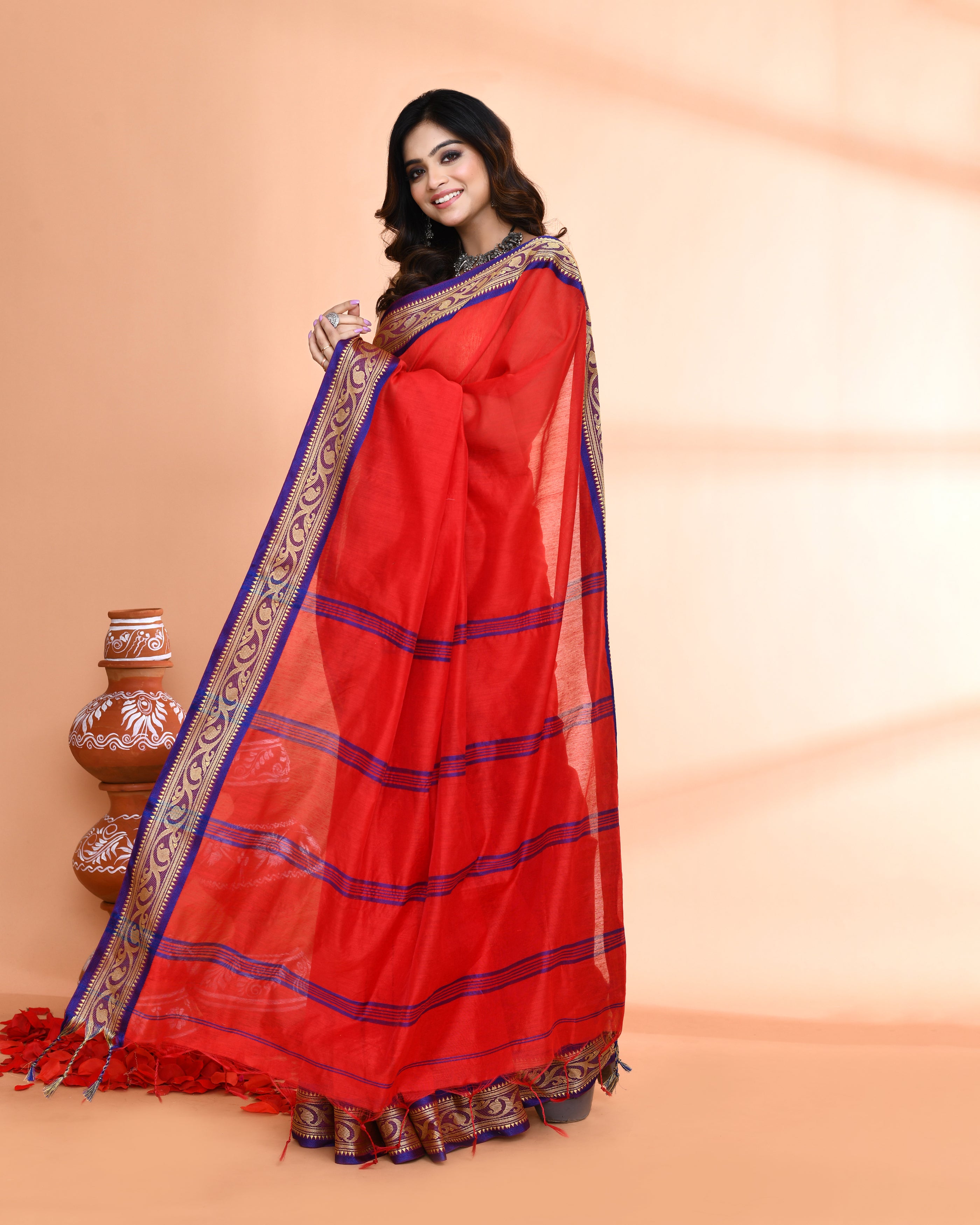 Piyari Fashion Women`s Cotton Silk Red Handloom Saree With BlouseAbout the Product:A fresh and vibrant addition to your wardrobes! This saree is cr...