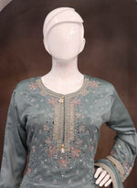 Vegaa Fashion Grey Vichitra Silk Embroidered Palazzo Suit